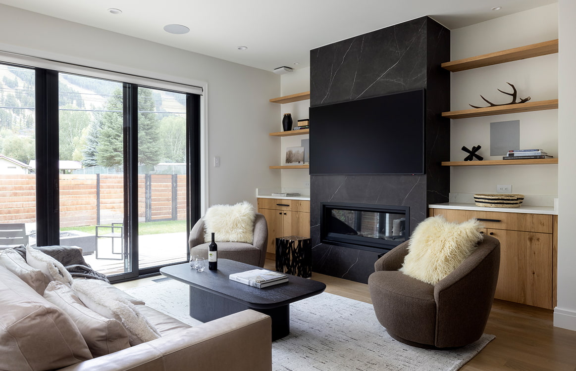 King View is a 3,206-square-foot residence that has three bedrooms, three bathrooms, a charming bunkroom, and an incredible primary suite. The main living area has an open floor plan with a stone fireplace as the centerpiece, perfect for cozy fall evenings. In addition to 1,730 square feet of terrace and patio spaces, floor-to-ceiling windows fill the space with natural light and offer stunning views of the changing landscape. Bryan Gleason Architects designed this home to combine form and function, meeting the client’s needs while providing a stunning aesthetic experience.